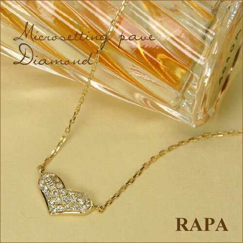 【送料無料】 マイクロセッティング ダイヤモンド・K18パヴェハート ネックレス◆定番のハートモチーフがとても立体的にぷっくりと可愛らしく、さらにダイヤの留め方にもこだわったパヴェリング 【ラパポート