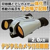 デジタルカメラ付双眼鏡(2.0メガ) CVM20 価格: 21,000円 レビュー評価: レビュー数: 10倍双眼鏡に200万画素デジタルカメラが付いた!!双眼鏡を覗いて・・感動の風景をパシャリ!軽量コンパクトで持ち運びもラクラク♪静止画(高画質)約25枚、動画1分間記録可能!サイズ/13.5×13×5cm 双眼鏡とデジカメが一体化!! 感動の風景をその場で記録!